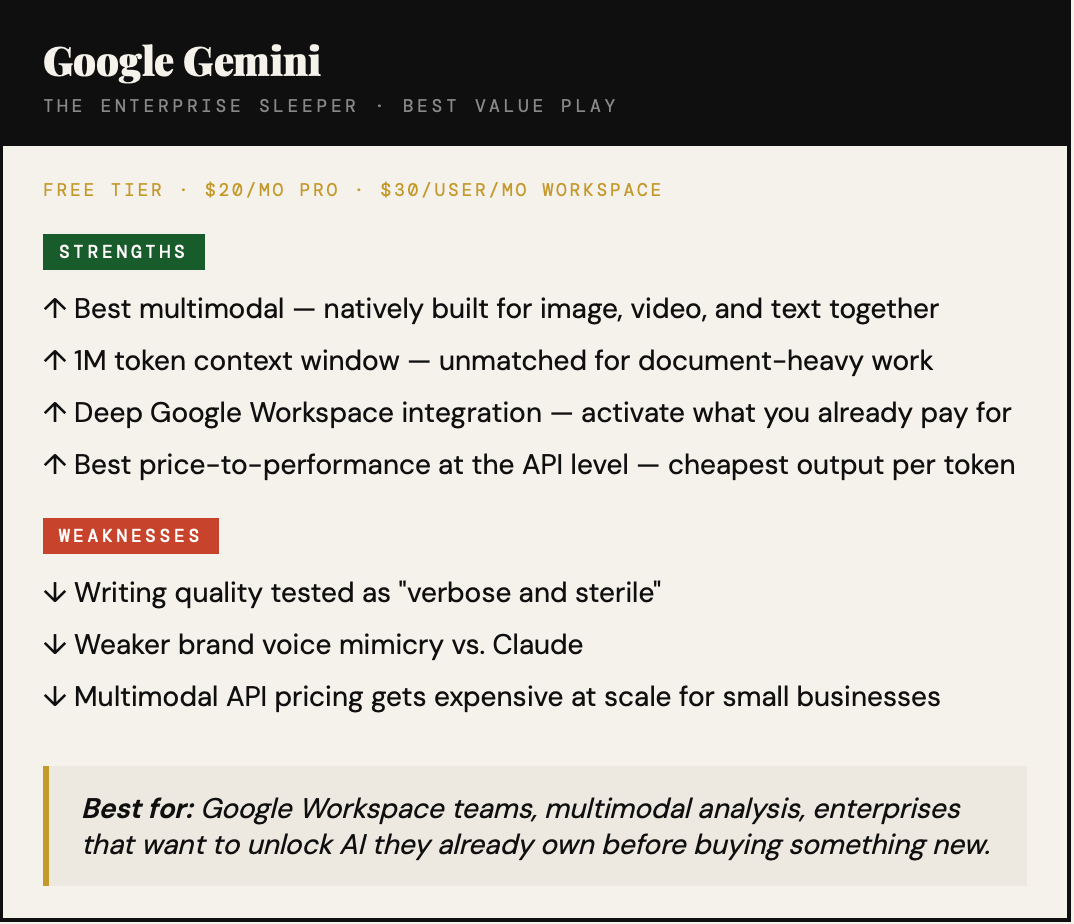None of them are wrong. And none of them are fully right, either. That's the actual story of enterprise AI in 2026, we're not in a winner-take-all market. We're in a tool stack market, and the businesses getting ahead aren't the ones who found the "best" AI. They're the ones who mapped the right tool to the right job.